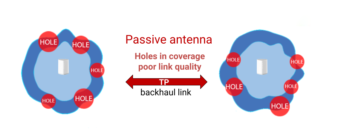 Because sMart-4-Mesh offers on average 6dB (i.e. 4 times) better coverage with respect to passive antennas*, positioning by the end user of the network’s devices has very little impact on the system’s ability to adapt to its surroundings.
