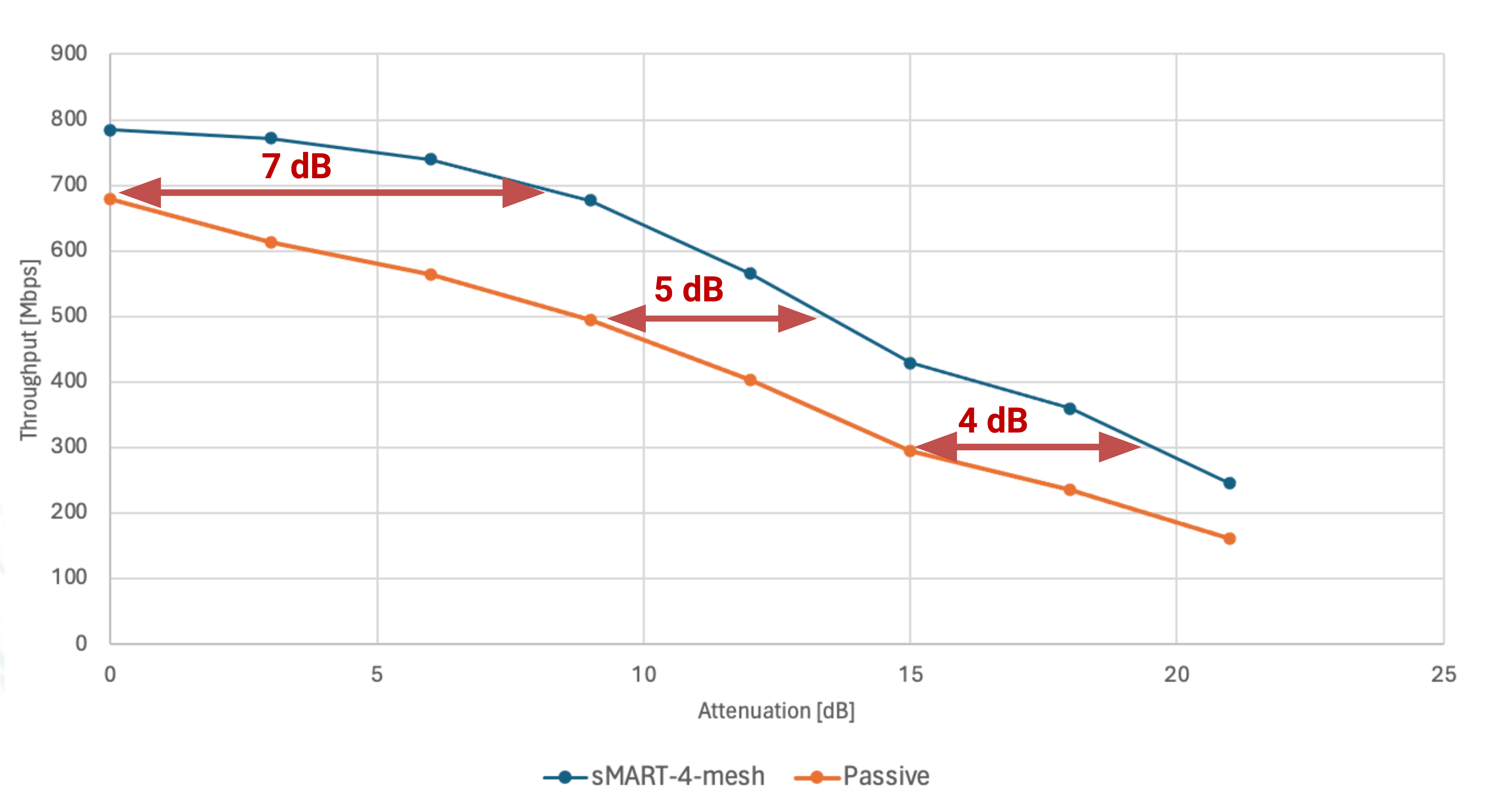 sMART-4-mesh benefit is on average 5-6 dB with respect to standard solutions